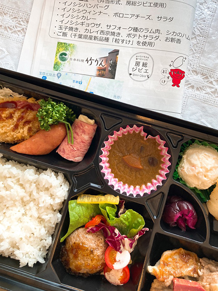 施設見学のあとは茂原市の『竹りん』さんに移動して、房総ジビエ弁当の試食会。